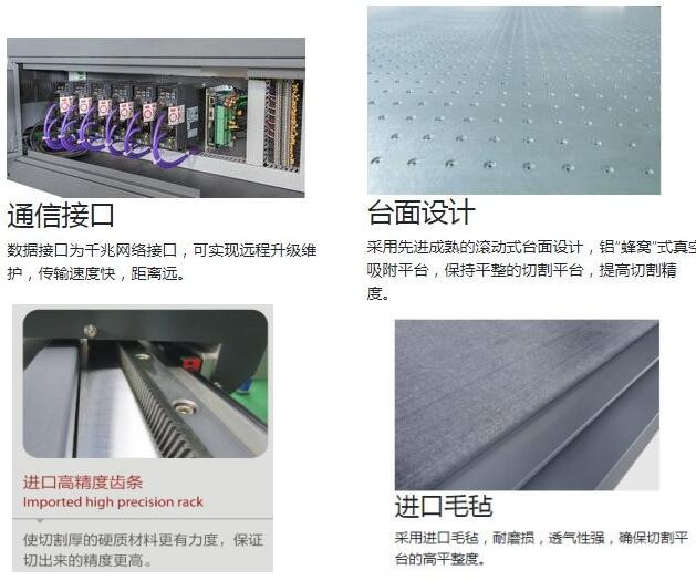2.采用進(jìn)口毛氈,耐磨損,透氣性強(qiáng),確保切割平臺的高平整度;